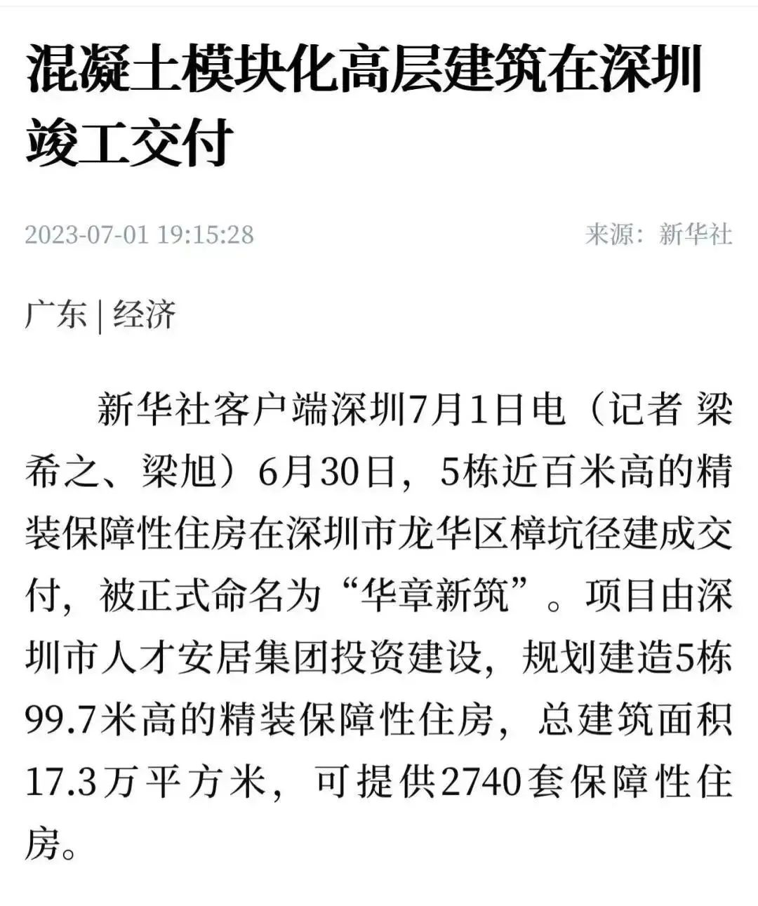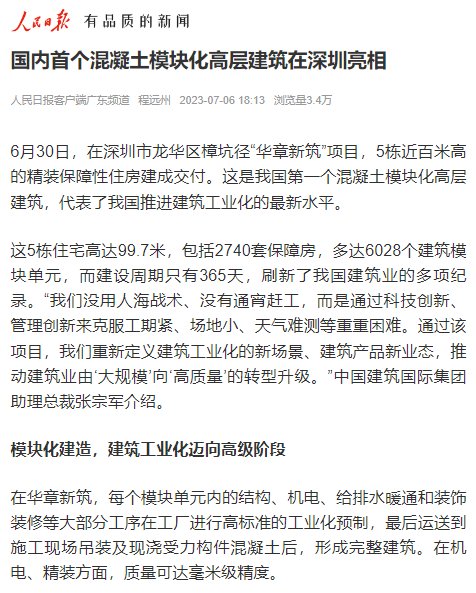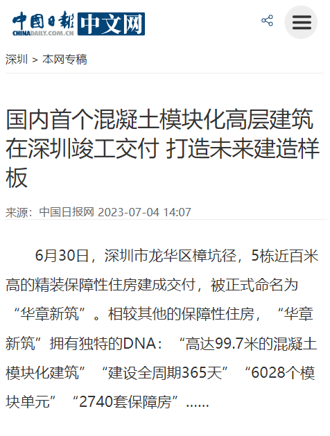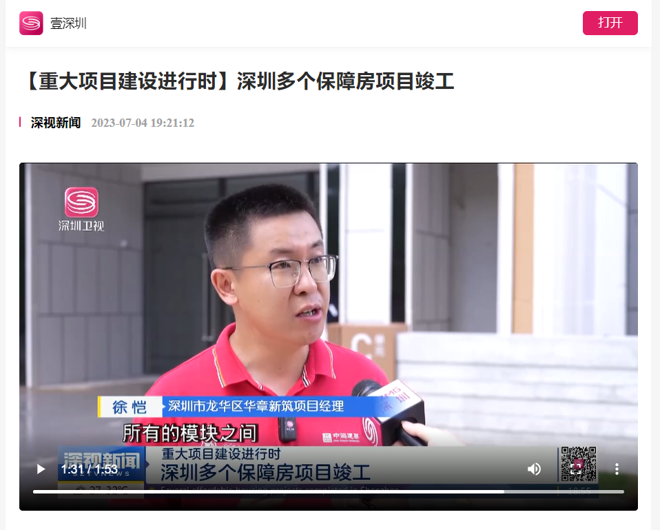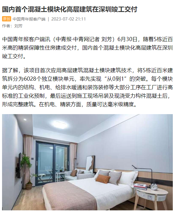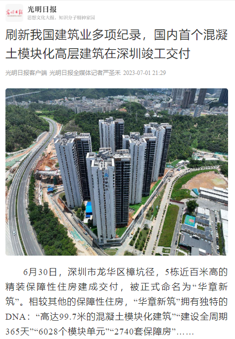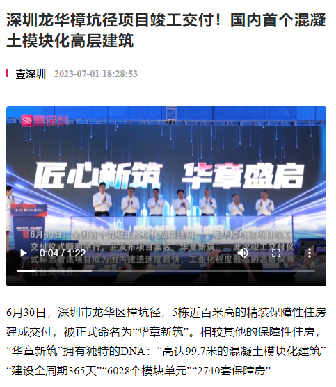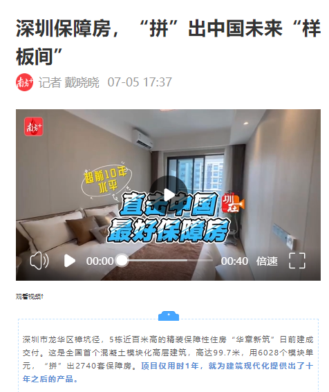 主流媒体聚焦|国内首个混凝土模块化高层建筑在深圳竣工交付