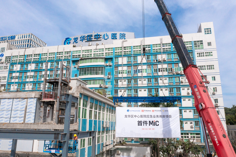 龙华区中心医院新门诊楼在设计之初就选择“可移动、可重复搬迁使用”的设计理念,采用了中建海龙可拆卸的钢结构模块化集成建筑(S-MiC)体系建造,既解决了当前急需的医疗空间,也能作为后续改扩建的发展储备,灵活适用未来不同阶段、不同场景的医疗需求,对全国医院的老旧改造和扩建具有借鉴意义。